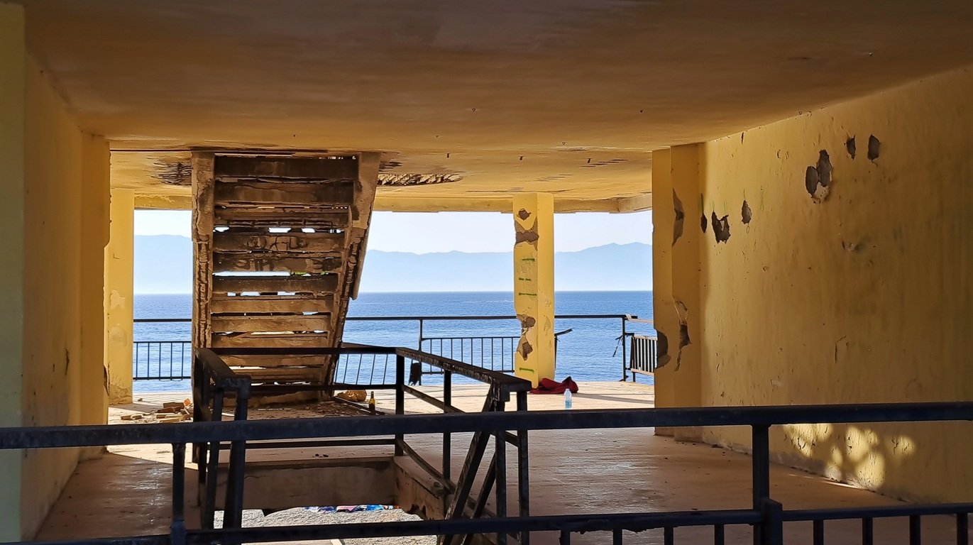 La fotografia è stata scattata nell'estate 2024 presso il Lido Comunale di Reggio Calabria, Rada Giunchi - una struttura abbandonata, in condizioni atroci e preagoniche, immersa in un degrado arduo da misurare. Ci vanno i tossici a bucarsi, le prostitute colombiane preadolescenti a battere.
