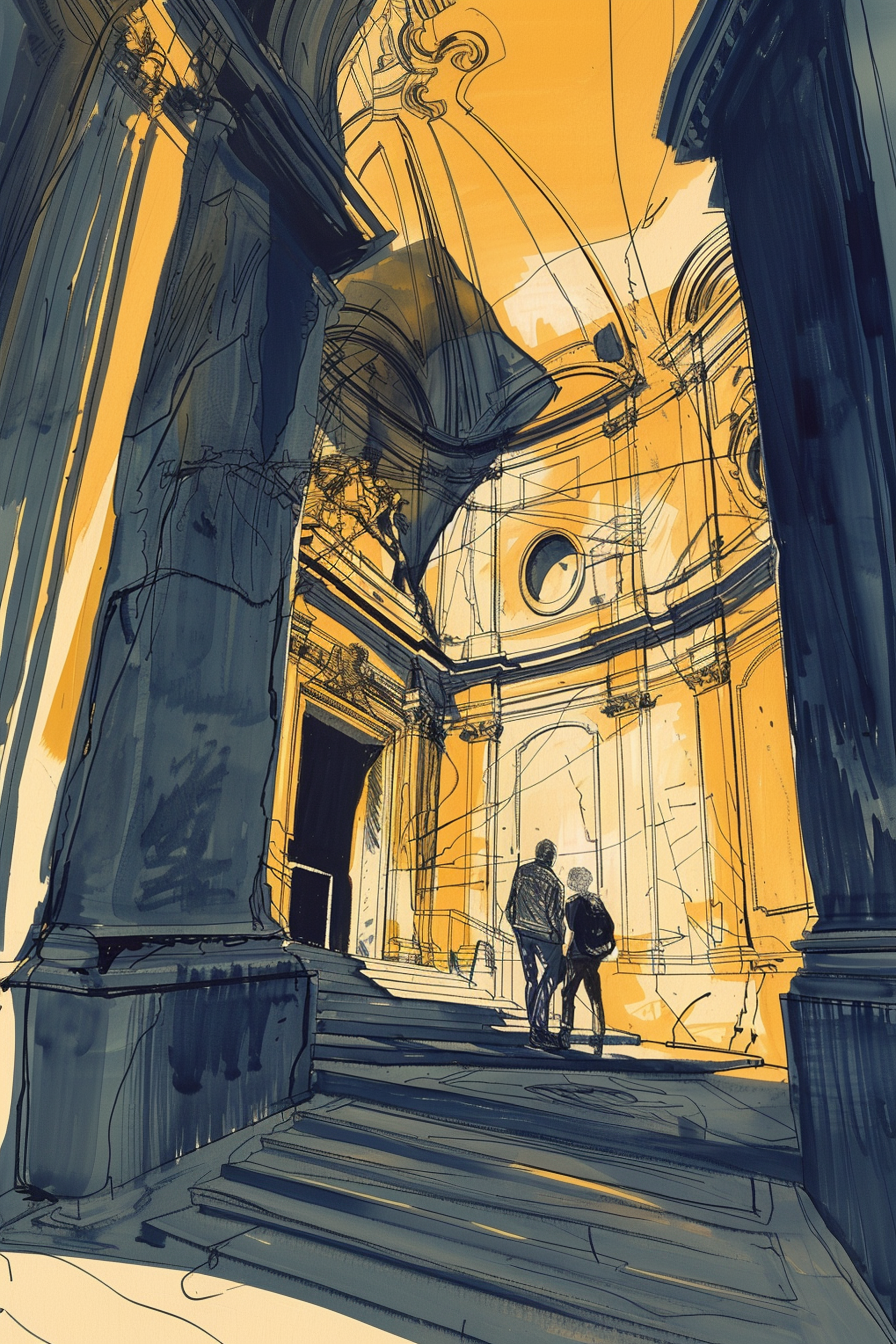 L’immagine è stata realizzata con pennelli e pennarelli acrilici, poi scansionata e lavorata con Adobe Fresco, nella primavera del 2024.